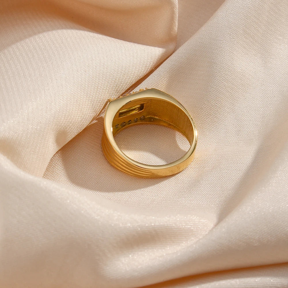 Whether you're attending a party or looking to add a touch of elegance to your daily ensemble, this ring is your go-to accessory. Its trendy geometric design and classic rectangle shape make it a versatile piece in any jewelry collection.